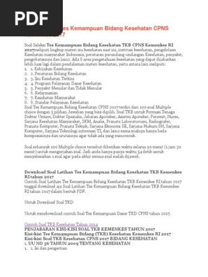 Untuk mendownload contoh Soal Tes Kemampuan Dasar TKD CPNS tahun 2017 silahkan contact. Jadwal dan syarat pendaftaran CPNS BKKBN 2021. Lika Liku Kisah Sukses Ikut Seleksi CPNS Kemenkes RI.