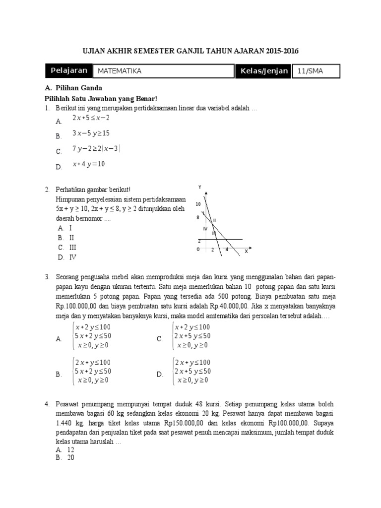 Contoh Soal Ujian Matematika Kelas 11 Semester 1 Dan Jawaban
