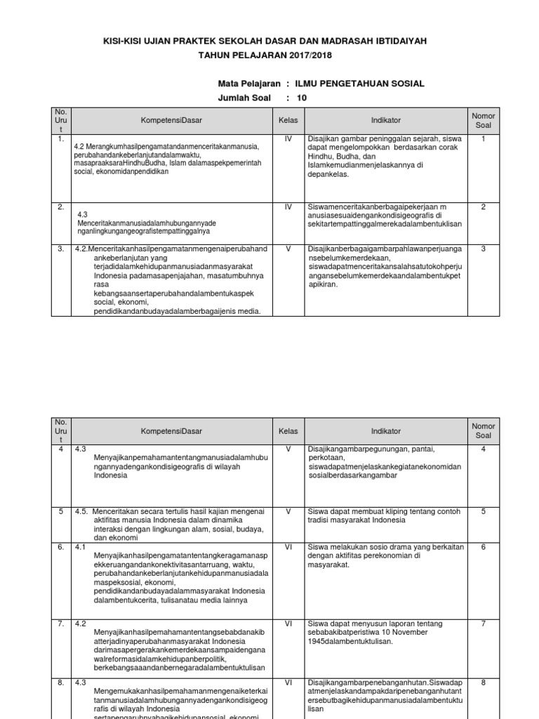 Sedangkan US terdiri dari mata pelajaran Pendidikan Kewarganegaraan PKN Ilmu Pengetahuan Sosial IPS. Assalamualaikum warahmatullahi wabarakatuh semangat belajar Ujian Sekolah IPS supaya lebih pintarsoal dilengkapi kunci jawaban biar mudah diingat. Download kisi-kisi ujian praktek dan instrumen atau pedoman penilaian ujian praktek SDMI tahun 2017.